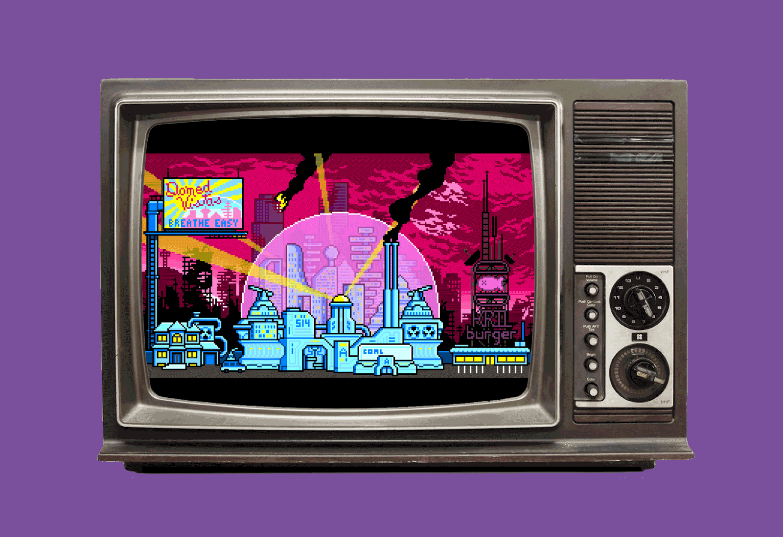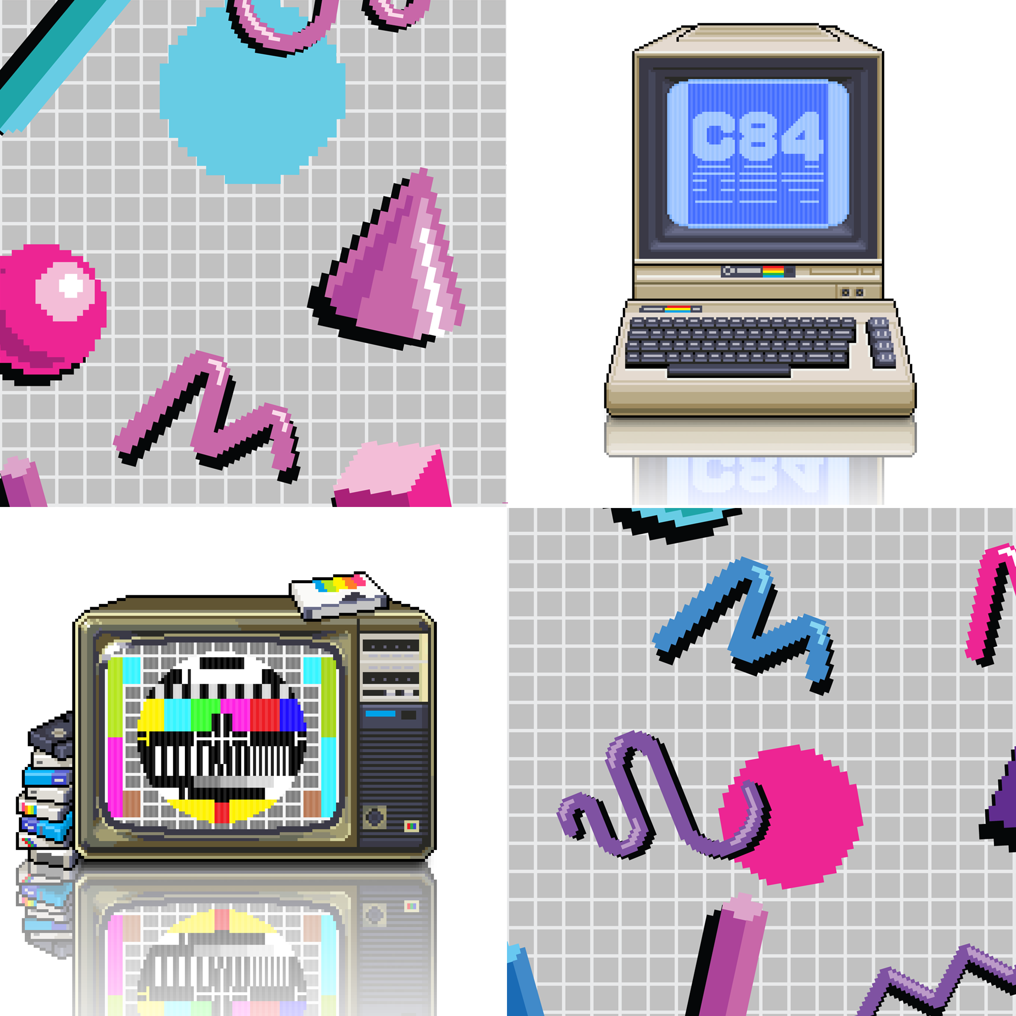 The result is pixel art illustrations of sleek futuristic surfaces featuring outdated hardware and plenty of video game motifs that tug on the nostalgia heart strings.