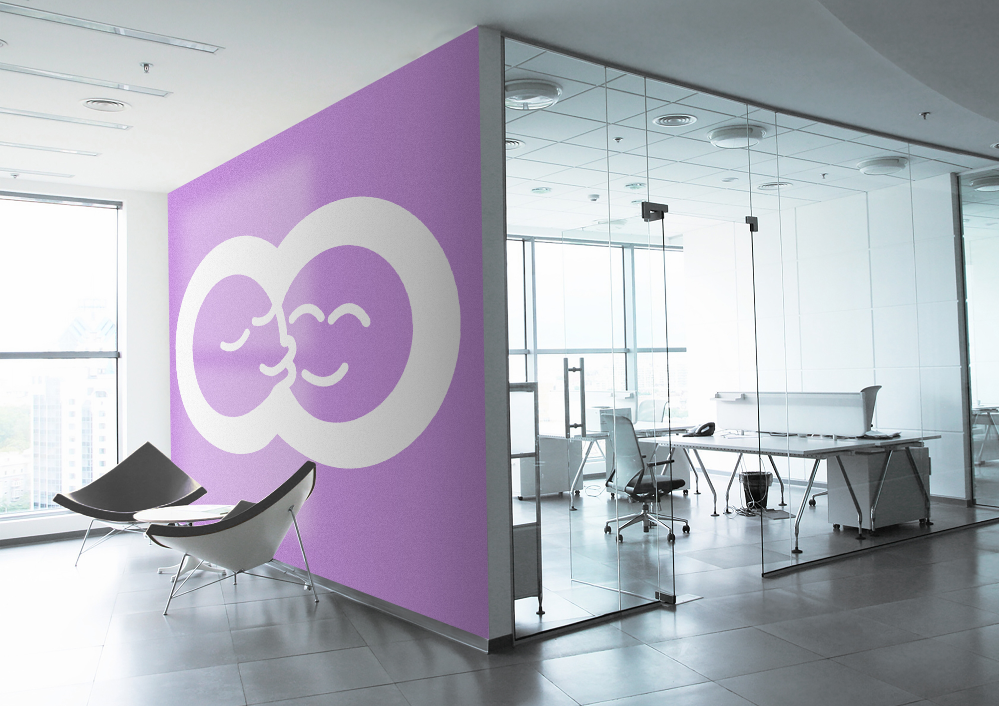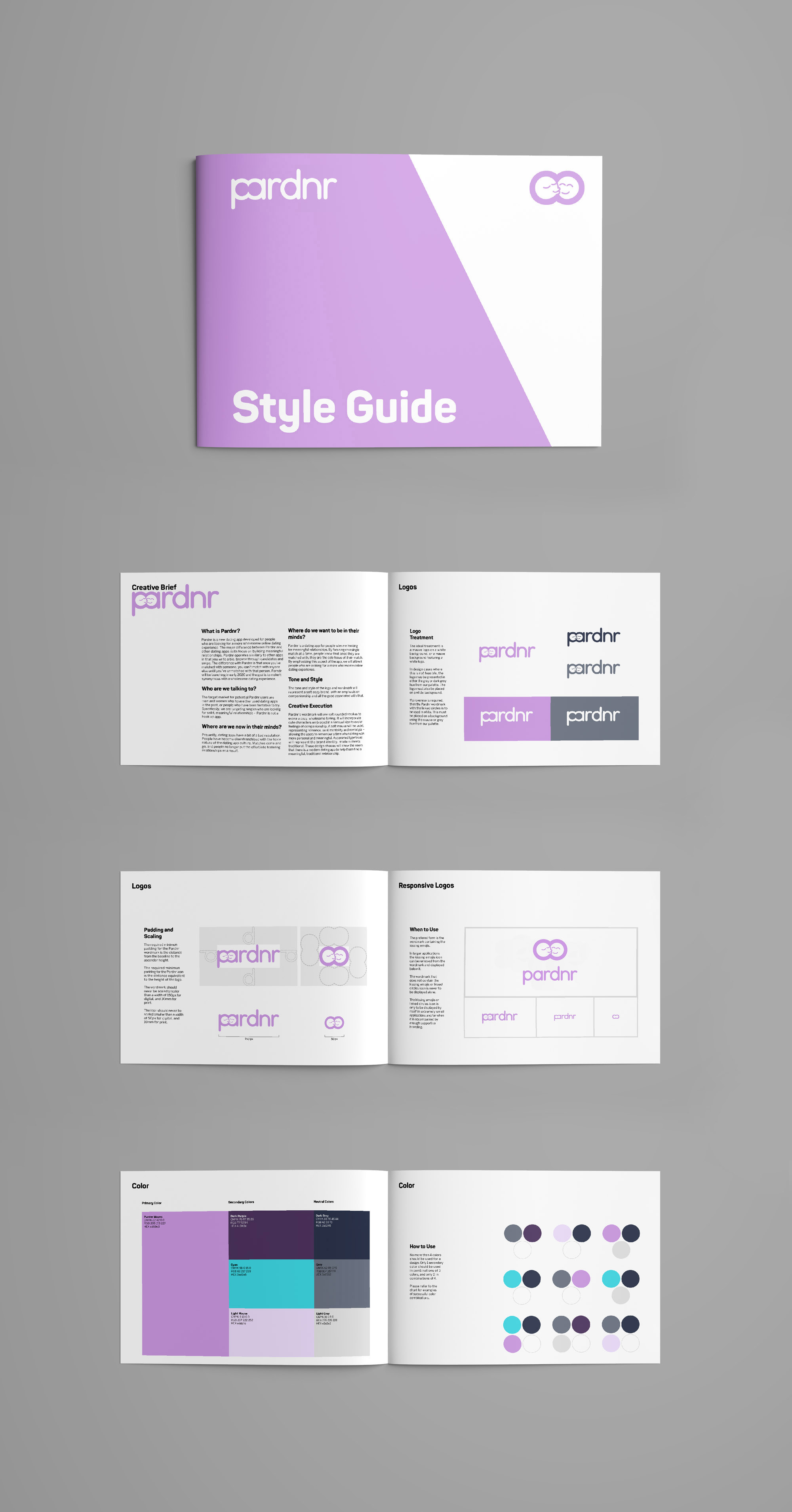 This is also reflected in the logo of two embracing emojis, that can stand on its own or integrate with the wordmark. Mauve was chosen for its comforting and soothing effects. A style guide was also created to flesh out the branding of this fictional company.