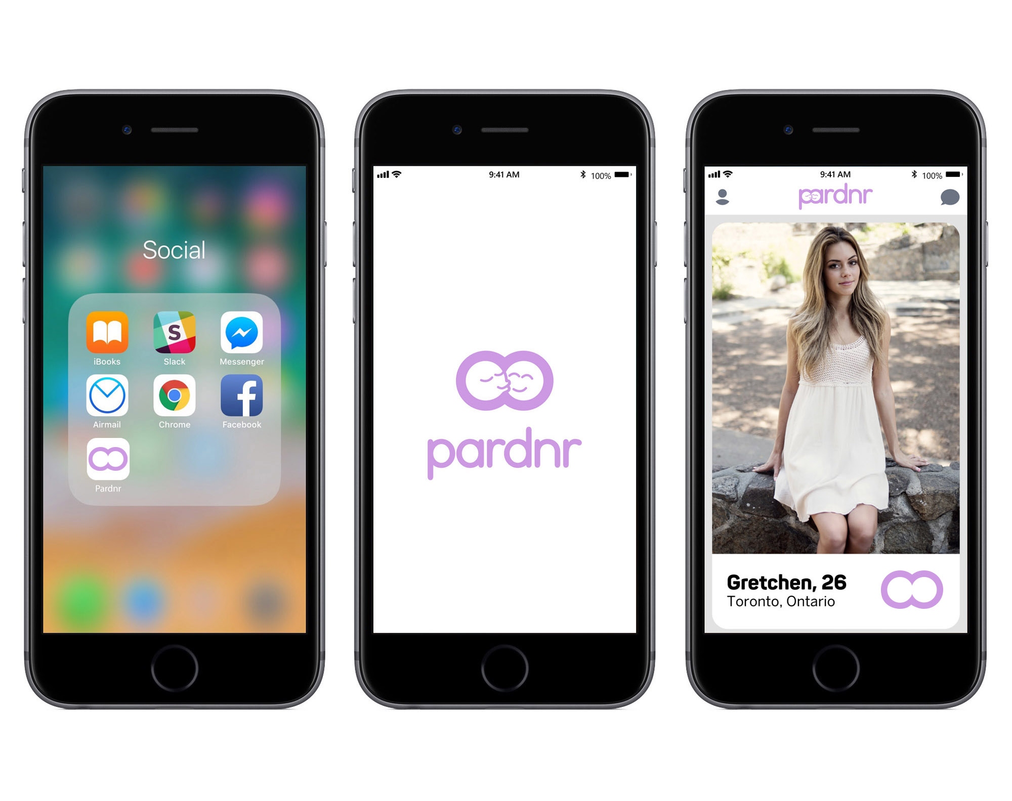 Pardnr is a fictional dating app that boasts a more wholesome dating experience. You can only match with one person at a time so that you can give your match your full attention.